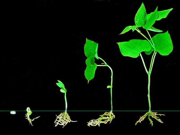 La primera expresión de crecimiento en la etapa de germinación corresponde a la aparición de la radícula, la cual se convierte posteriormente en la raíz primaria o principal. En la parte alta de la radícula, pocos días después de ocurrida la germinación, se desarrollan entre tres y siete raíces secundarias.